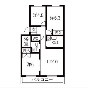 | 4-501(5階部分) | 3LDK (63.18m2) | ||||