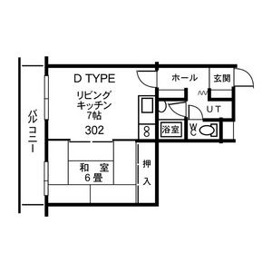 | 302 (3階部分) | 1DK (24.3m2) | ||||