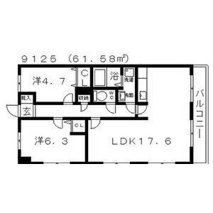 | 602 (6階部分) | 2LDK (61.58m2) | ||||
