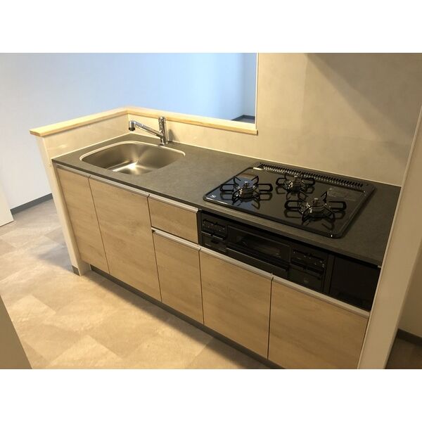 | キッチン | ○ 給湯器(プロパンガス) ○ ガスコンロ(2口) ○ システムキッチン ○ 対面式キッチン |