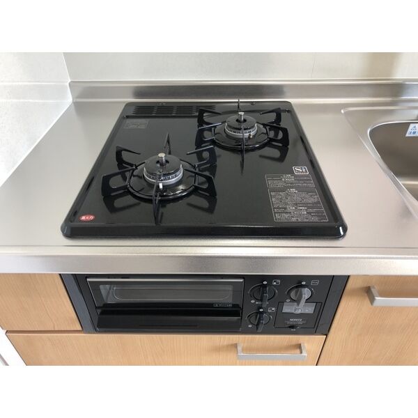 | キッチン | ○ 給湯器(プロパンガス) ○ ガスコンロ(2口) ○ システムキッチン |