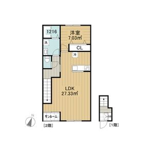 | 202 (2階部分) | 1LDK (54.45m2) | ||||