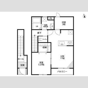 | 203 (2階部分) | 2LDK (51.35m2) | ||||
