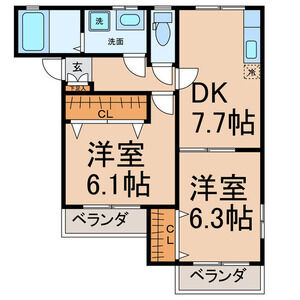 | 2A (2階部分) | 2DK (47.75m2) | ||||