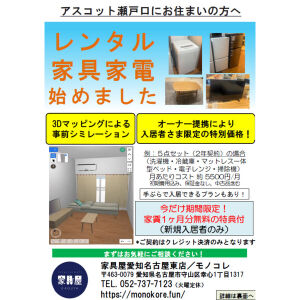 ●レンタル家具はじめました!詳細は書類ダウンロードにてご確認ください!利用特典もございます(賃料1ヶ月フリーレント)