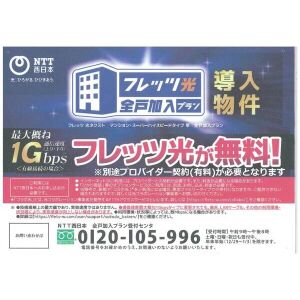 フレッツ光回線使用料無料(別途プロバイダー契約要)