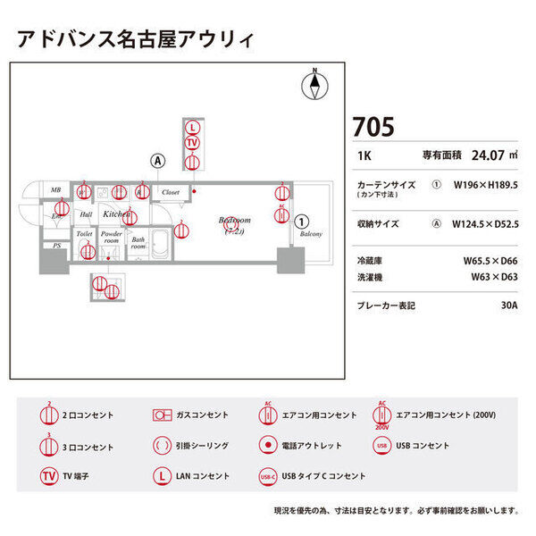 | 0805 (8階部分) | 1K (24.07m2) | ||||