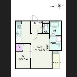 | 302 (3階部分) | 1LDK (32.17m2) | ||||