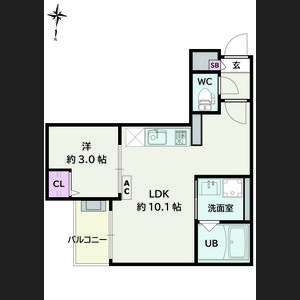 | 303 (3階部分) | 1LDK (30.81m2) | ||||