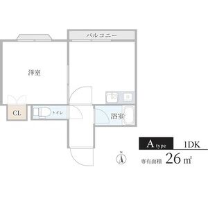 | 101 (1階部分) | 1DK (26m2) | ||||