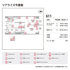 | 0611(6階部分) | 2DK (46.61m2) | ||||