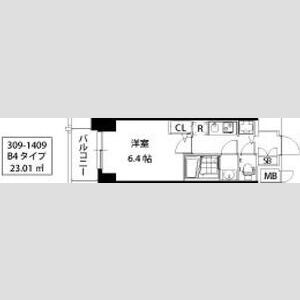 | 1009 (10階部分) | 1K (23.01m2) | ||||