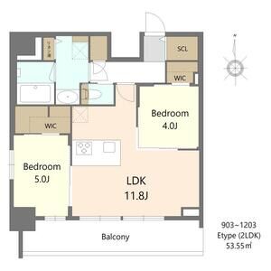 | 903 (9階部分) | 2LDK (53.55m2) | ||||