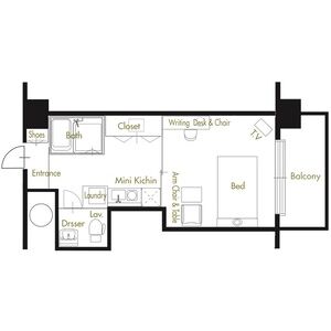家具、家電付(液晶テレビ・電子レンジ・冷蔵庫・洗濯機・乾燥機・ホテル仕様ベッド・ライティングデスク・アームチェア・テーブル)