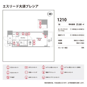 | 1210 (12階部分) | 1K (25.88m2) | ||||