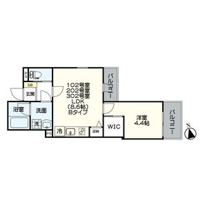 203(2階部分) | 1LDK (33.7m2) | ||||