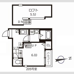 | 205【初期安CP】(2階部分) | 1K (21.55m2) | ||||