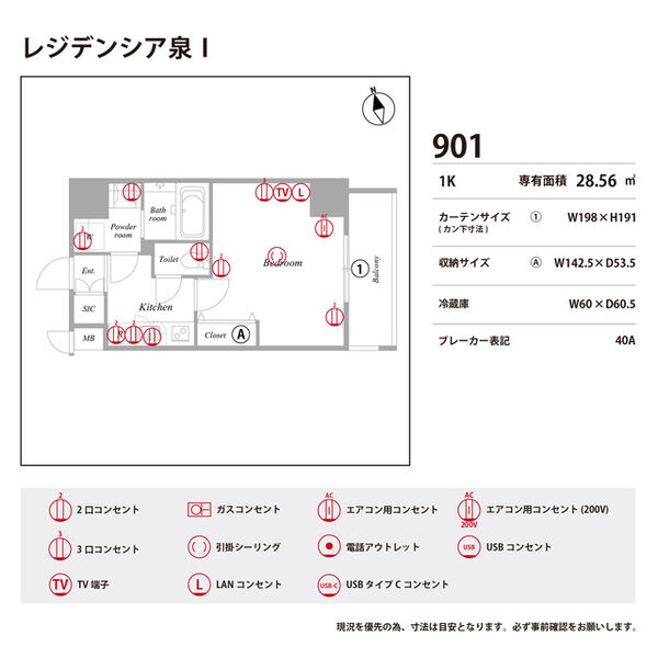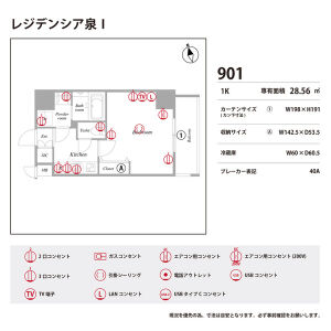 | 0901 (9階部分) | 1K (28.56m2) | ||||