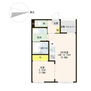 | 202 (2階部分) | 1LDK (30.44m2) | ||||