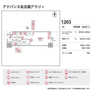 | 0803 (8階部分) | 1K (24.07m2) | ||||
