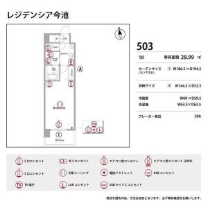 | 0503 (5階部分) | 1K (28.99m2) | ||||