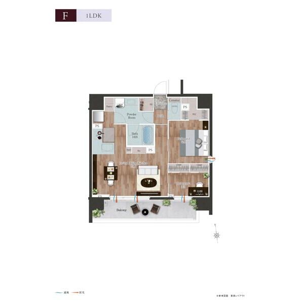 | 0402 (4階部分) | 1DK (26.98m2) | ||||