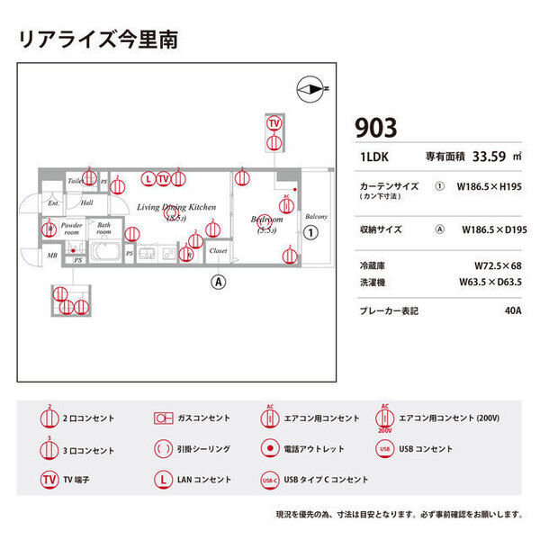 | 0903 (9階部分) | 1LDK (33.59m2) | ||||