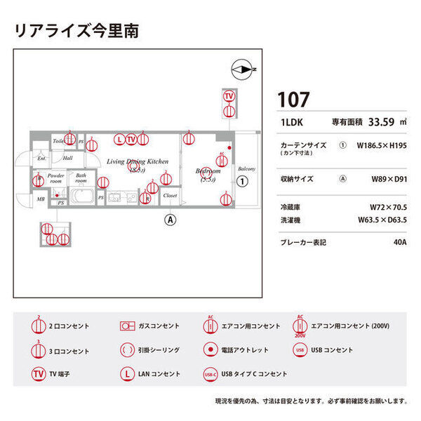 | 0107 (1階部分) | 1LDK (33.59m2) | ||||