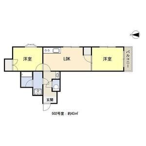 | 502(5階部分) | 2LDK (43m2) | ||||