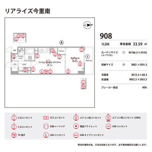 | 0908 (9階部分) | 1LDK (33.59m2) | ||||