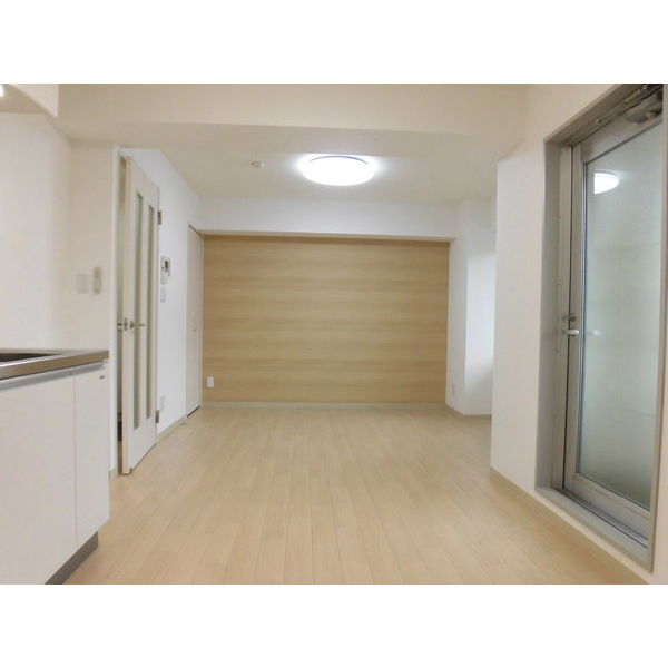 居間インテリアクロス、システムキッチン、3口コンロ、TVモニターホン、シャンドレ、シャワートイレ
