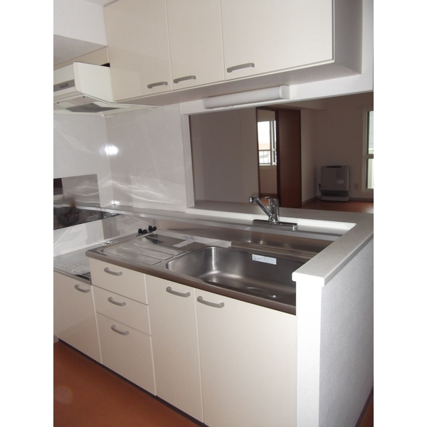 都市ガスストーブ2台、対面キッチン、シャンドレ、カラーモニターホン、バルコニー