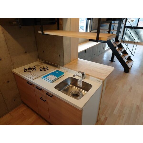 | キッチン | ○ 給湯器(プロパンガス) ○ ガスコンロ(2口) ○ システムキッチン |