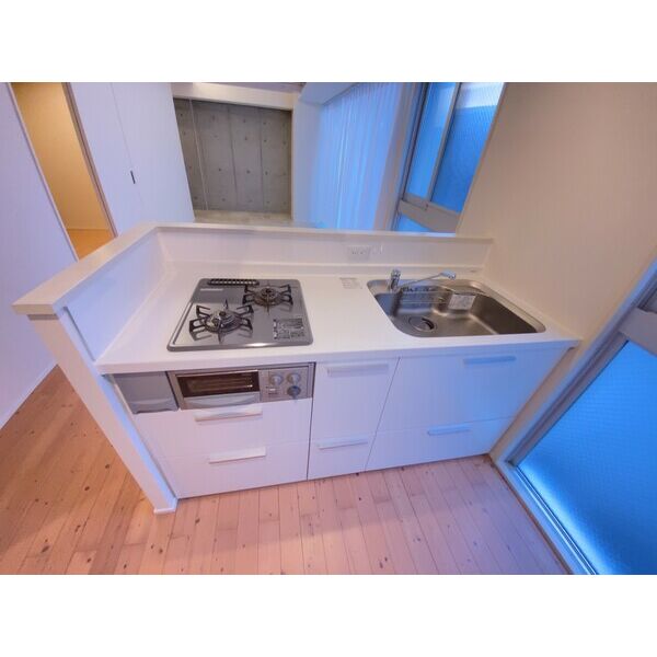 | キッチン | ○ 給湯器(ガス) ○ ガスコンロ(2口) ○ システムキッチン ○ 対面式キッチン ○ アイランドキッチン |