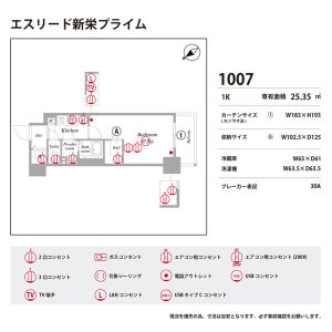 | 1007(10階部分) | 1K (25.35m2) | ||||