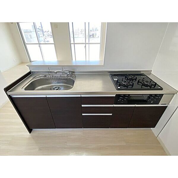 | キッチン | ○ 給湯器 ○ ガスコンロ(3口以上) ○ システムキッチン ○ カウンターキッチン |