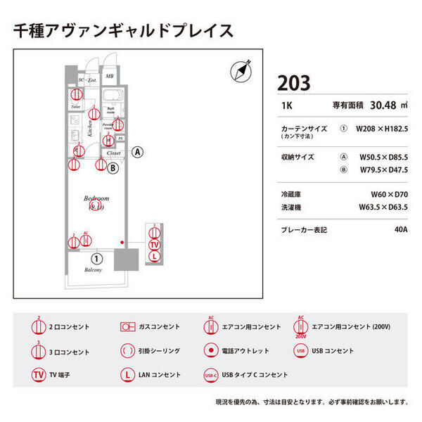 | 0203(2階部分) | 1K (30.48m2) | ||||