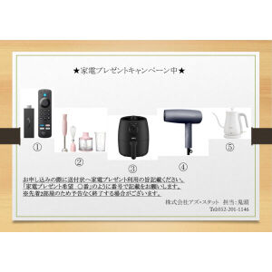 こちらのお部屋をご契約いただいた方には便利な生活家電を1点プレゼント!!
