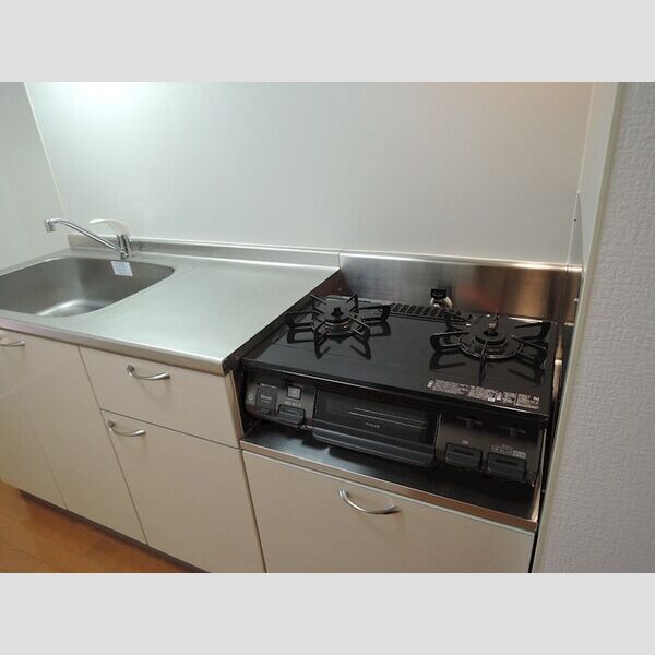 | キッチン | ○ 給湯器(ガス) ○ ガスコンロ設置可 ○ ガスコンロ(2口) ○ システムキッチン |