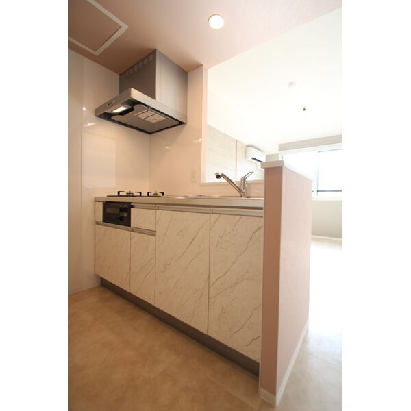 | キッチン | ○ 給湯器(都市ガス) ○ ガスコンロ(2口) ○ システムキッチン ○ 対面式キッチン ○ カウンターキッチン |