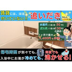 | 水廻り | ○ 風呂(ユニットバス) ○ トイレ ○ 洗面台(独立) ○ 浴室乾燥機 ○ シャワートイレ ○ 追い焚き ○ 洗髪洗面化粧台 |