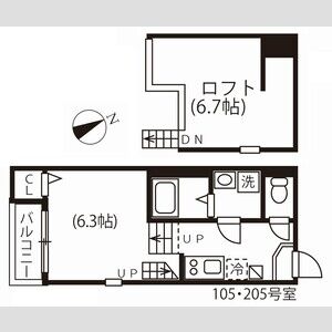| 105【初期安CP】 (1階部分) | 1K (21.87m2) | ||||