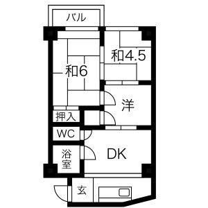 | 408 (4階部分) | 3DK (45.69m2) | ||||
