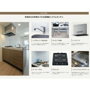 | キッチン | ○ 給湯器(都市ガス) ○ ガスコンロ(2口) ○ システムキッチン ○ カウンターキッチン |