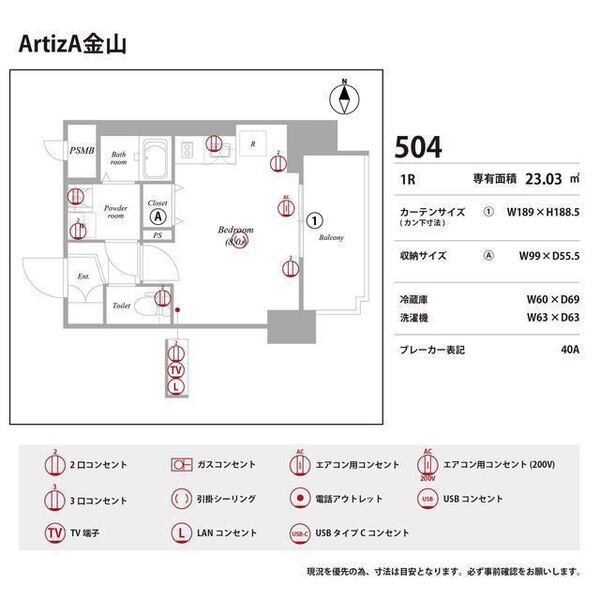 | 0304 (3階部分) | ワンルーム (23.03m2) | ||||
