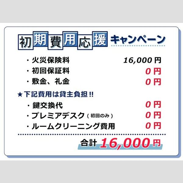☆初期費用応援キャンペーン(下記費用は貸主負担)