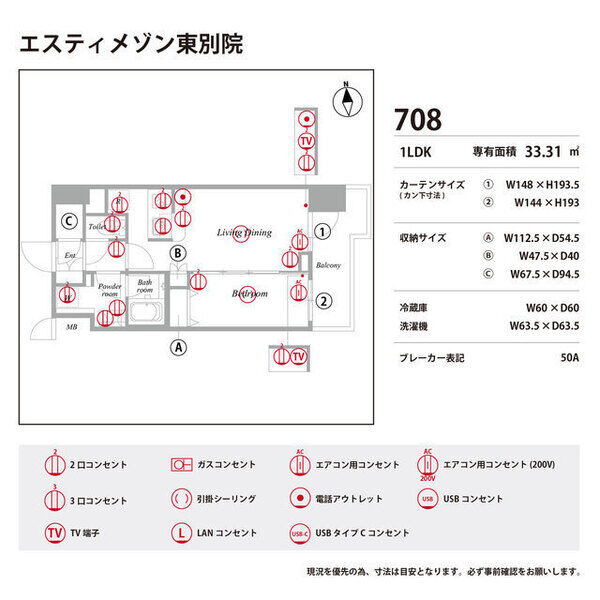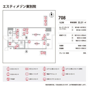 | 0708 (7階部分) | 1LDK (33.31m2) | ||||