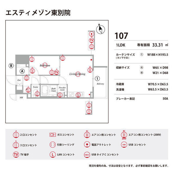 | 0107 (1階部分) | 1LDK (33.31m2) | ||||